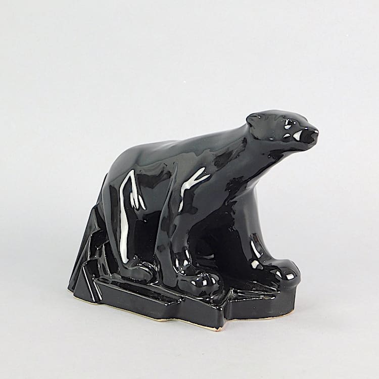Black English ceramic cubist polar bear.