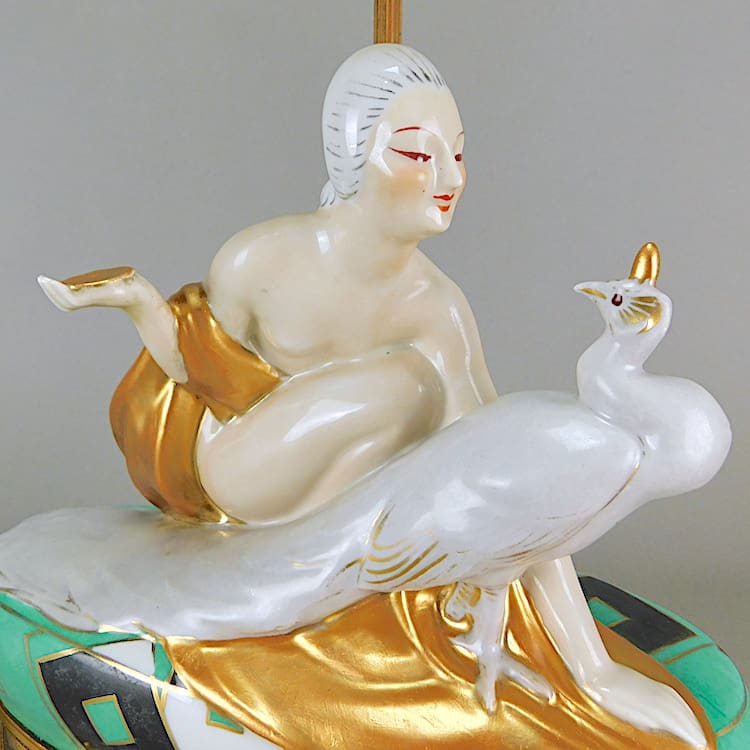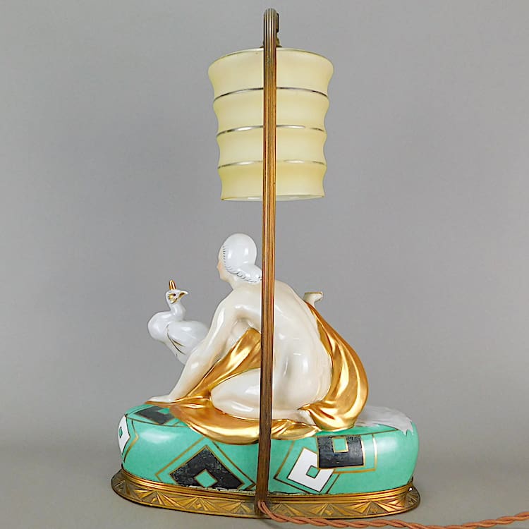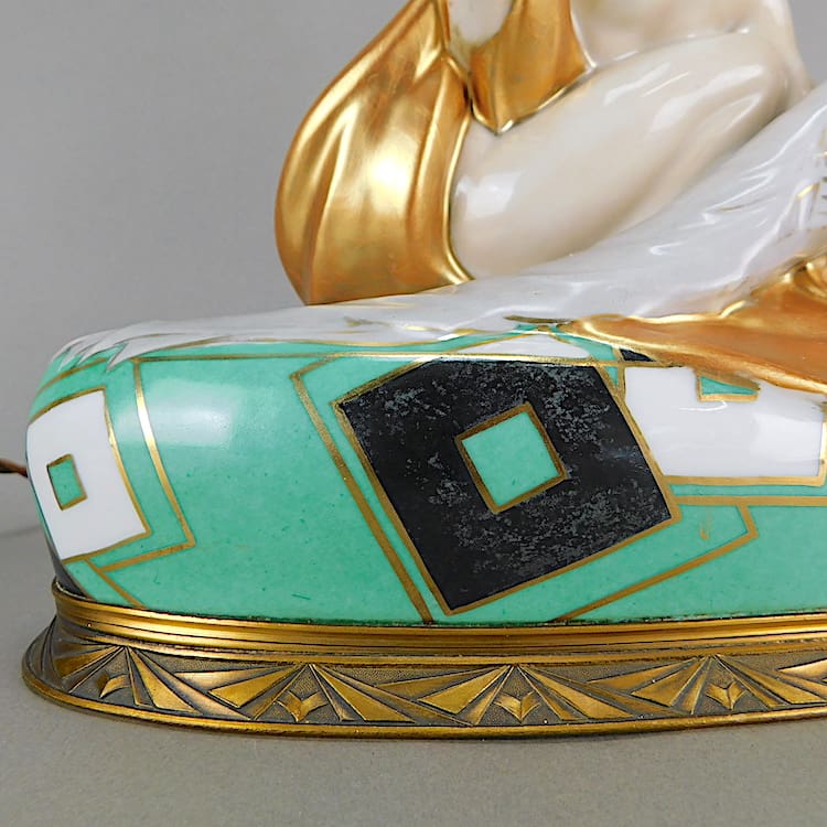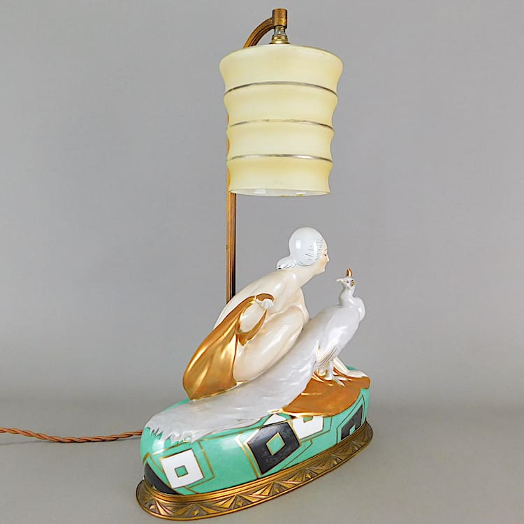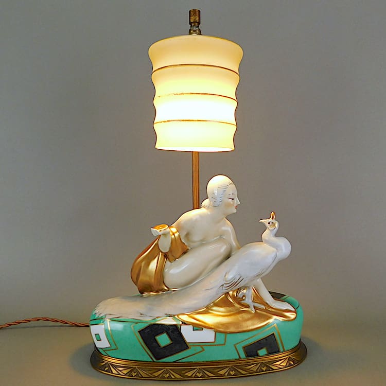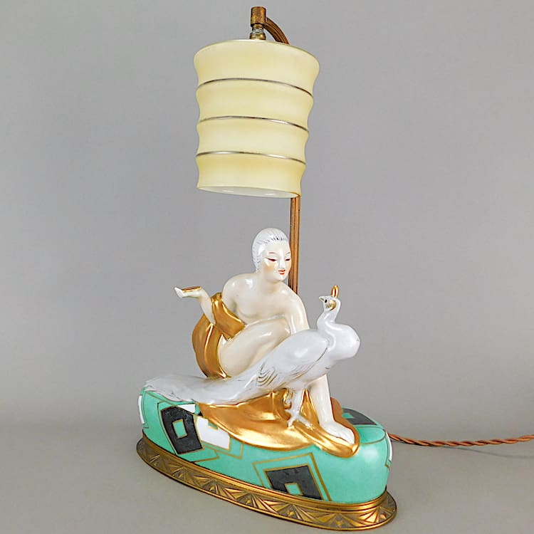 Stunning French hand painted Art Deco table lamp Designed by Pierre Traverse for the Aladin company.