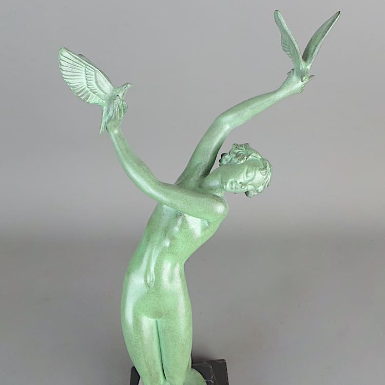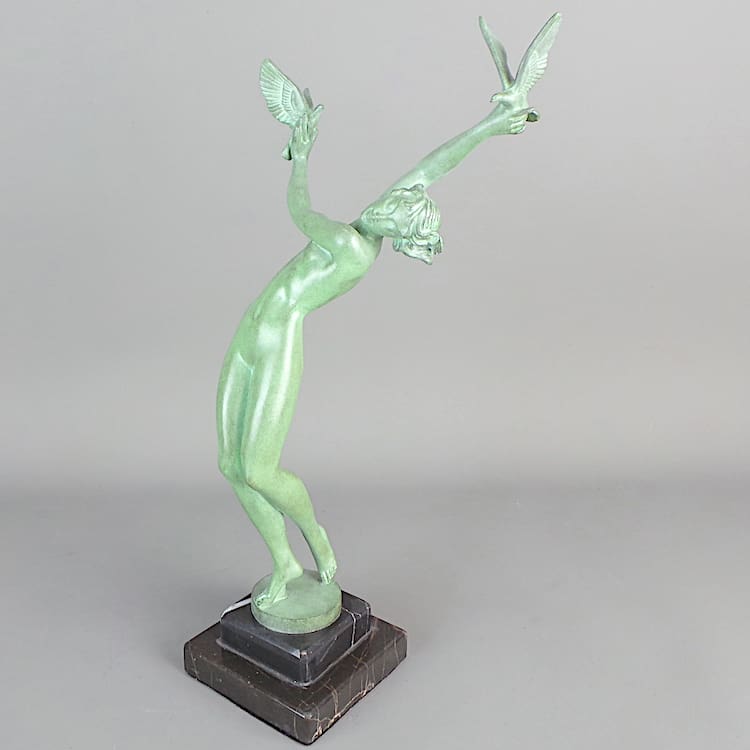 This lovely art metal statue was designed by the Le Verrier foundry in the 1930’s.