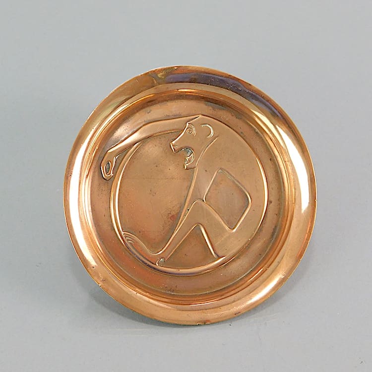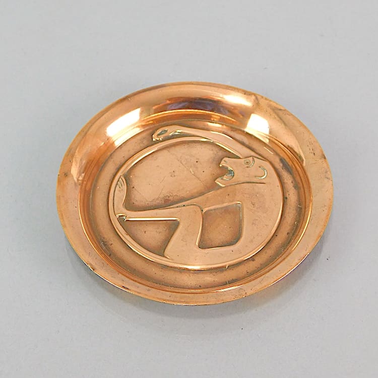 An American copper monkey coaster by Chase and with the makers mark stamped to the base.