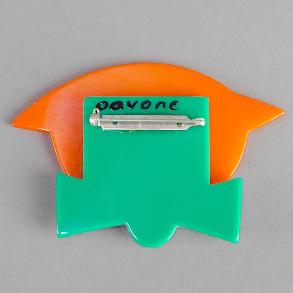 French vintage galalith cat head brooch hand made and painted by Marie-Christine Pavone. Signed to the back and fitted with a roll safety clasp.