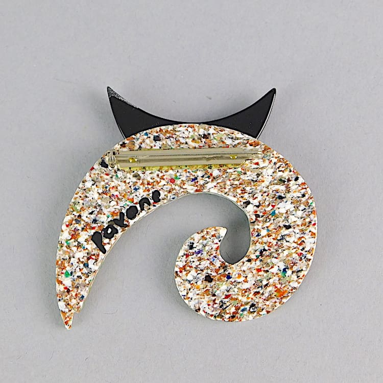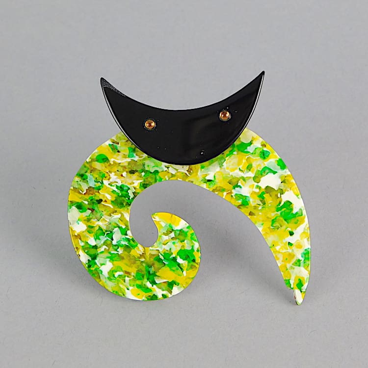 French vintage galalith hand made brooch by Marie-Christine Pavone. Hand signed to the reverse and fitted with a roll safety clasp.