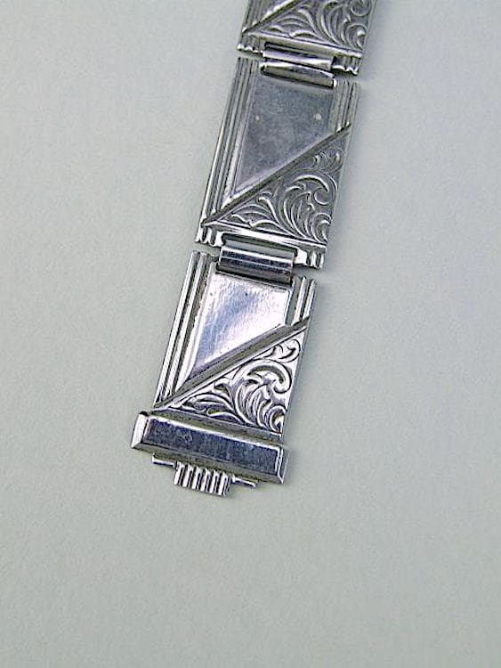 Chatelaine or watch fob chain for which the Bengel factory were famous. This one probably made in the late 1920’s. Has central panels with floral patterning.