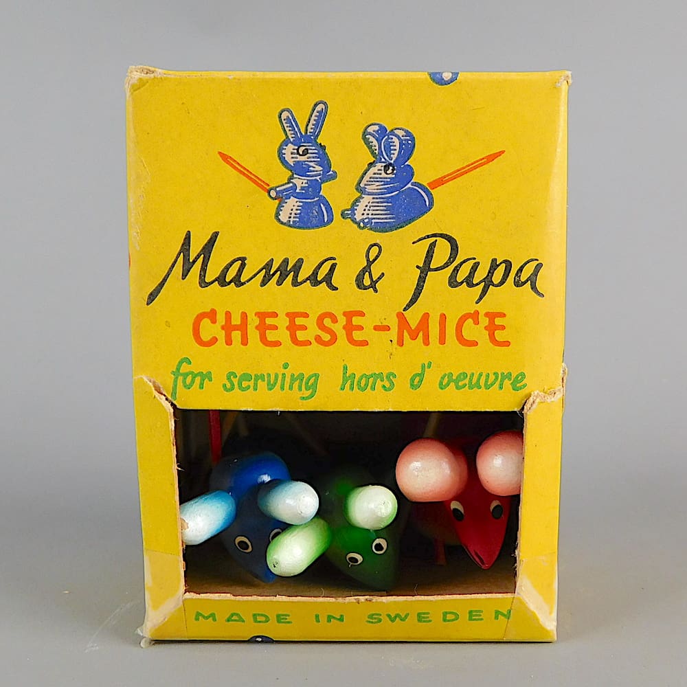 Modernist Swedish wooden cheese mice for serving hors d’oeuvres.