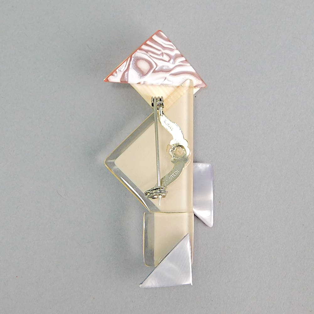 Rare Chinaman Brooch by Lea Stein. I have been lucky enough to get some of these very rare 1st edition chinamen. They were made standing upright or bending over. This one is bending over and has an orange and black colour way. Signed on the safety V clasp.