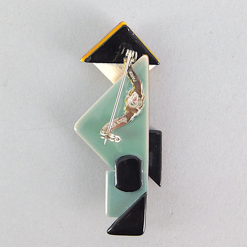 Rare Chinaman Brooch by Lea Stein. I have been lucky enough to get some of these very rare 1st edition chinamen. They were made standing upright or bending over. This one is standing up. Signed on the safety V clasp.