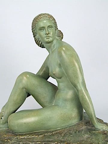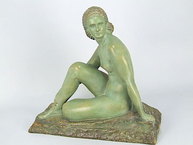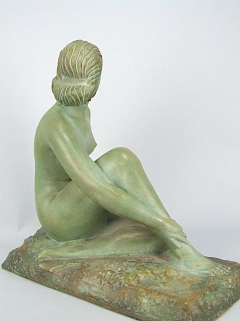 A green patinated terracotta nude with the Chiparus zigzag hair detail and signed to the base D. H. Chiparus.