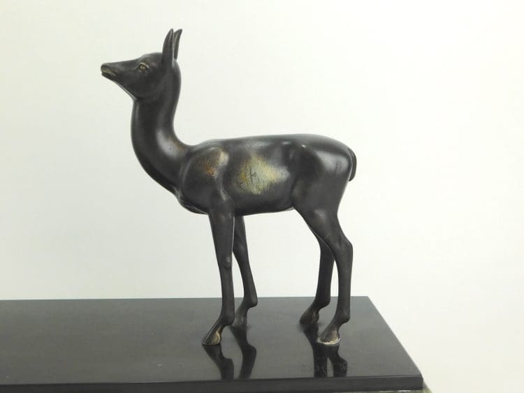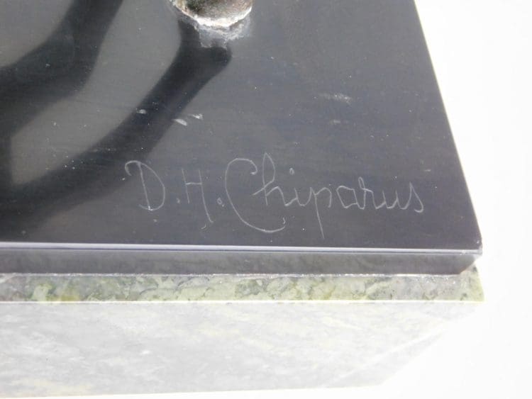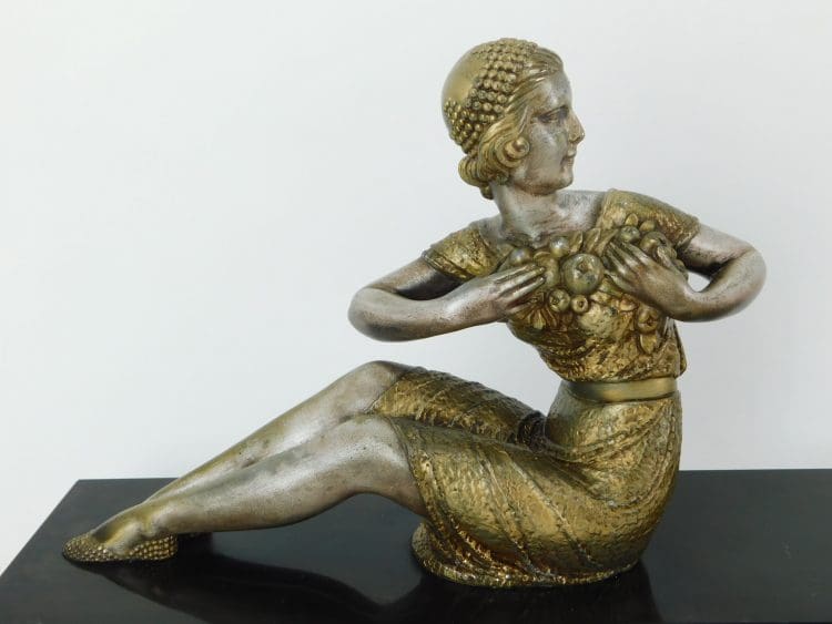Medium sized spelter group by Demetre Chiparus mounted on a marble and onyx base.
