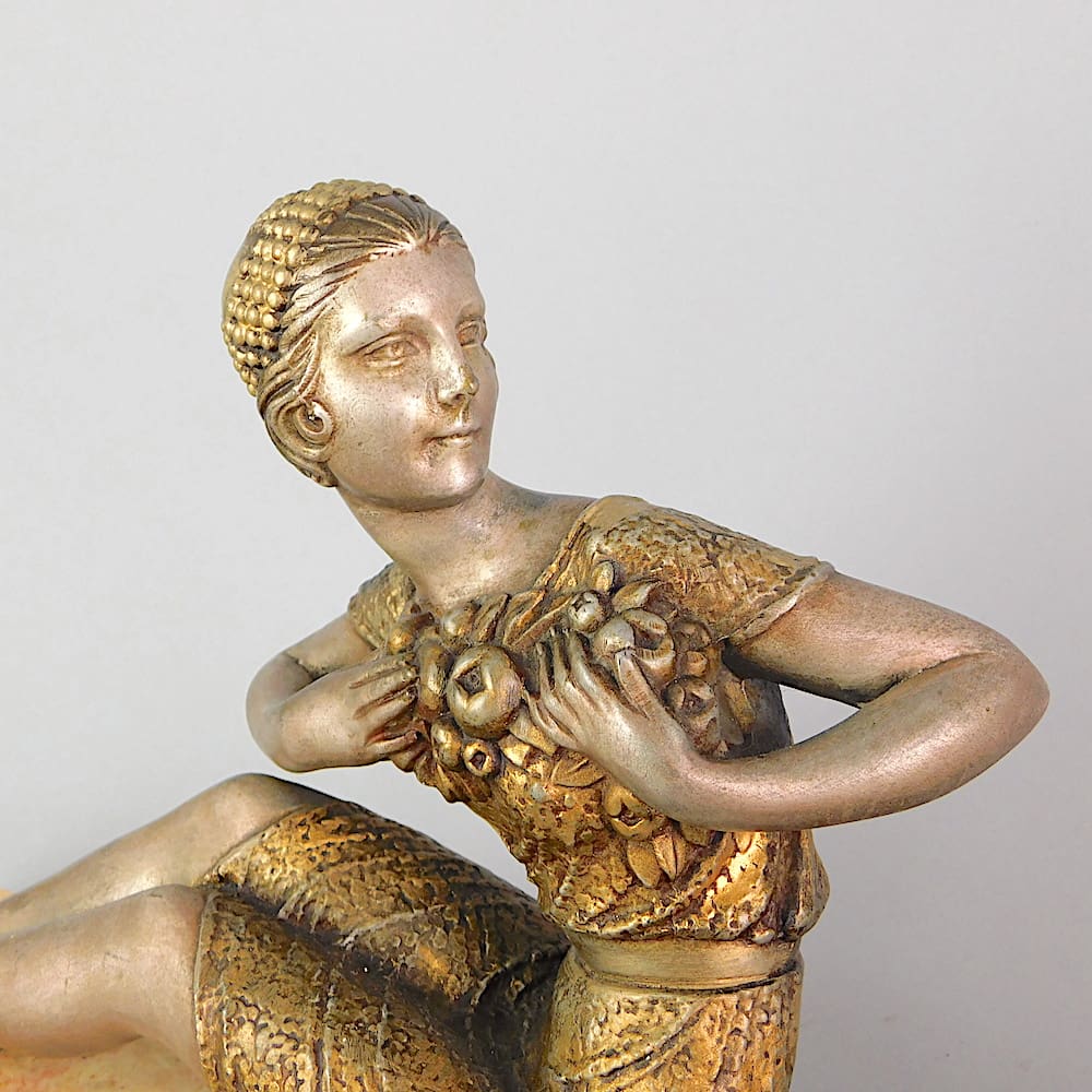 Medium sized spelter group by Demetre Chiparus mounted on a marble and onyx base.