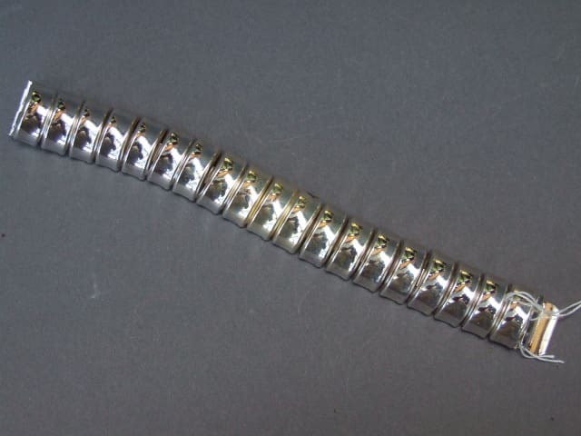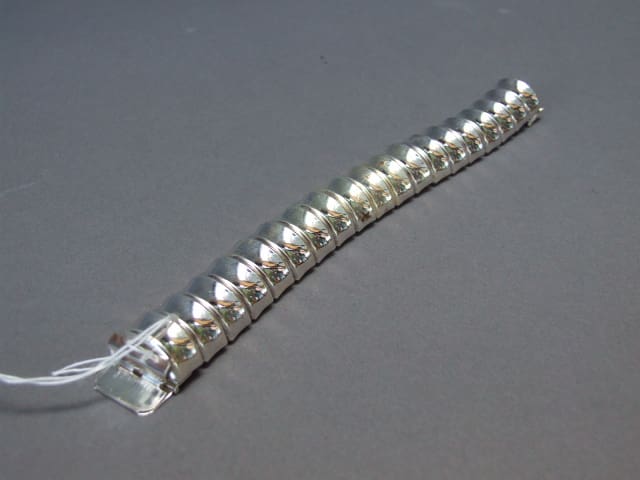 This chromed metal bracelet is from a vintage range called Ferraggioli, which was made by Pierre Bex in the early 1960’s.