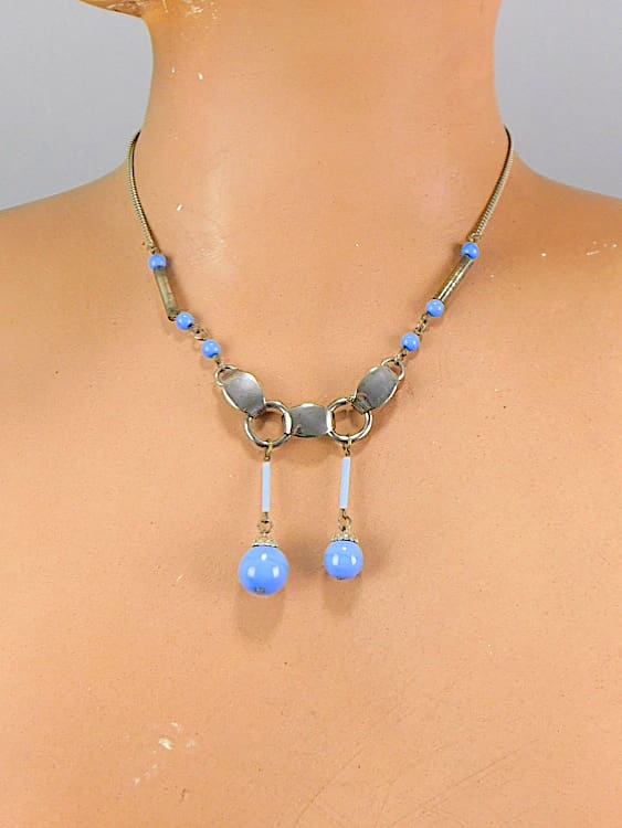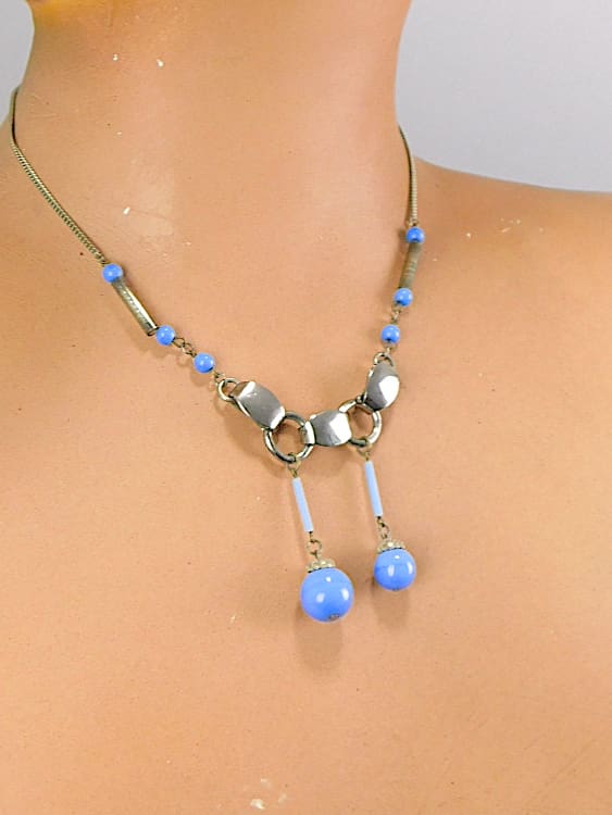 Chrome and blue glass tassel necklace, probably by Bengel.