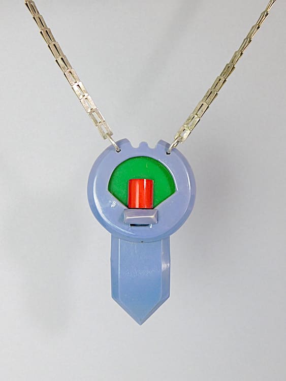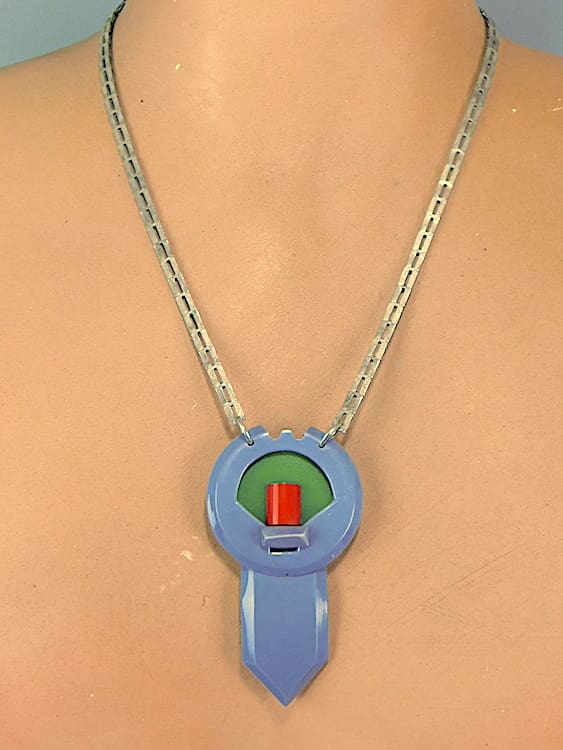 French celluloid blue, green and red necklace.