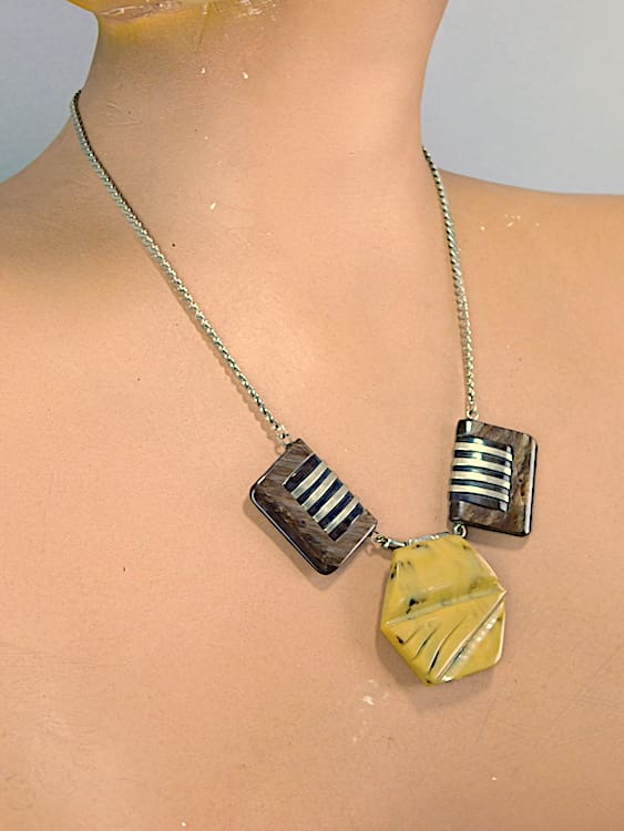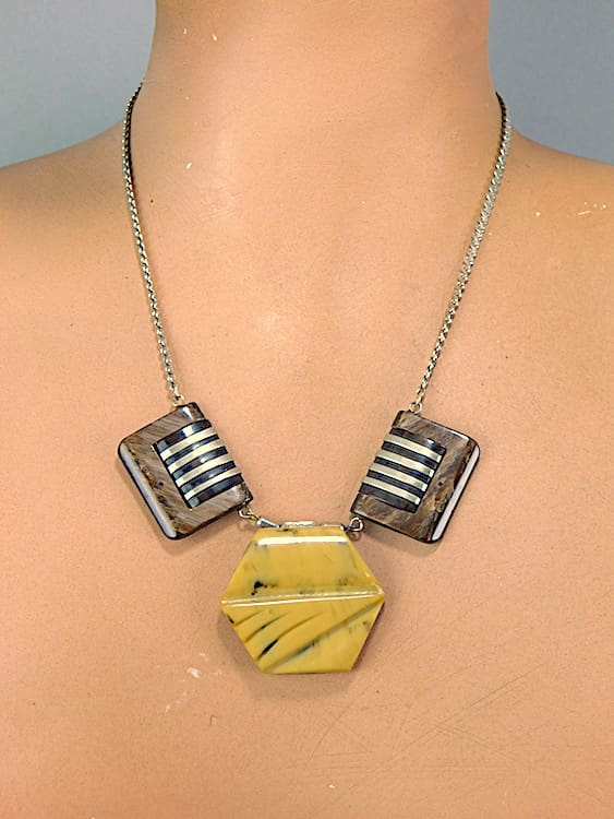Large chrome and chocolate and toffee coloured galalith necklace, made by Bengel in the early 1930’s.