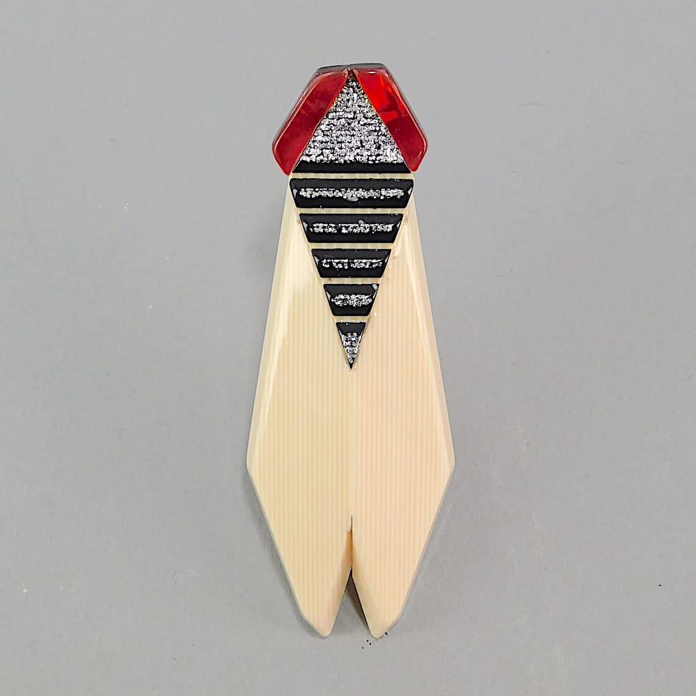 Lea Stein Cicada brooch. Signed on the safety V clasp.