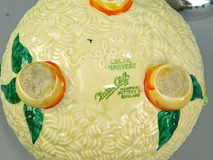 Celtic Harvest Biscuit Barrel, chrome lidded, signed to the base and stamped Newport Potteries, etc.
