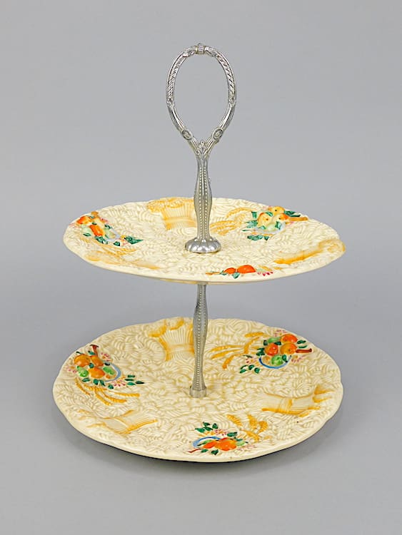 Newport Potteries 2-tiered Celtic Harvest sandwich plate signed to the base.