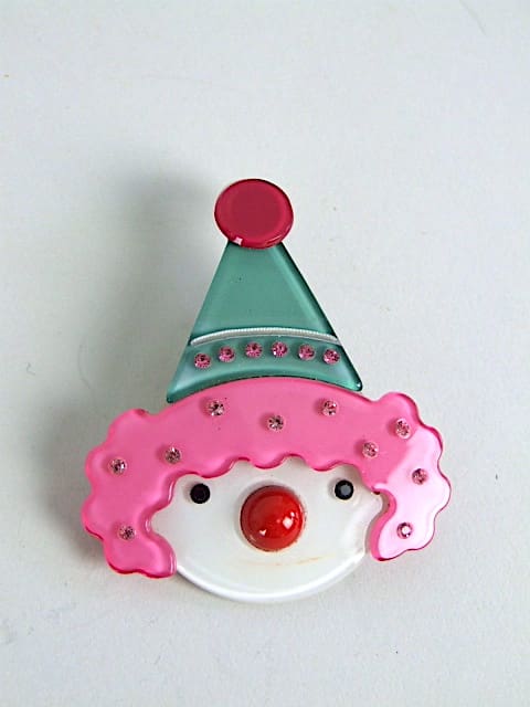 French phenolic clown brooch. Fitted with a roll safety clasp.