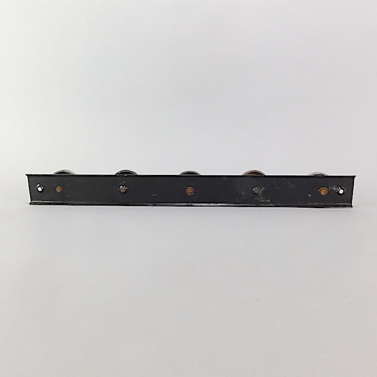 French Art Deco coat rail in black painted metal and with 5 chrome chunky knobs. Made in the 1920s.