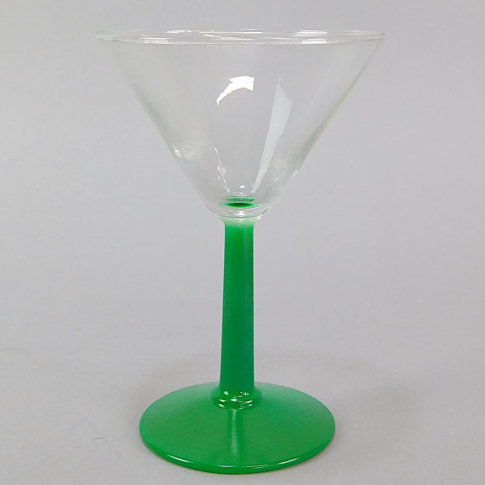 A set of 5 coloured stemmed English art deco cocktail glasses.