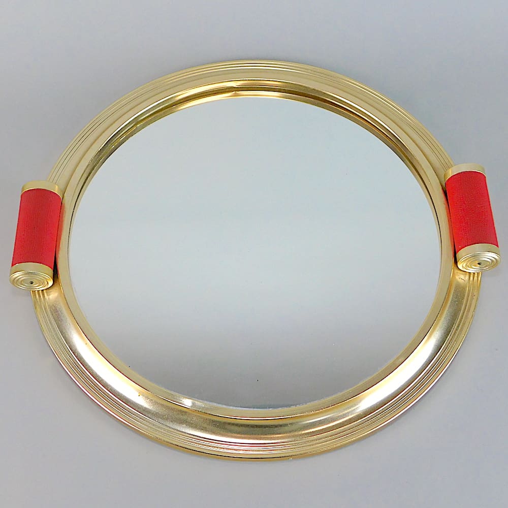 French art deco tray with red shagreen effect scroll handles.
