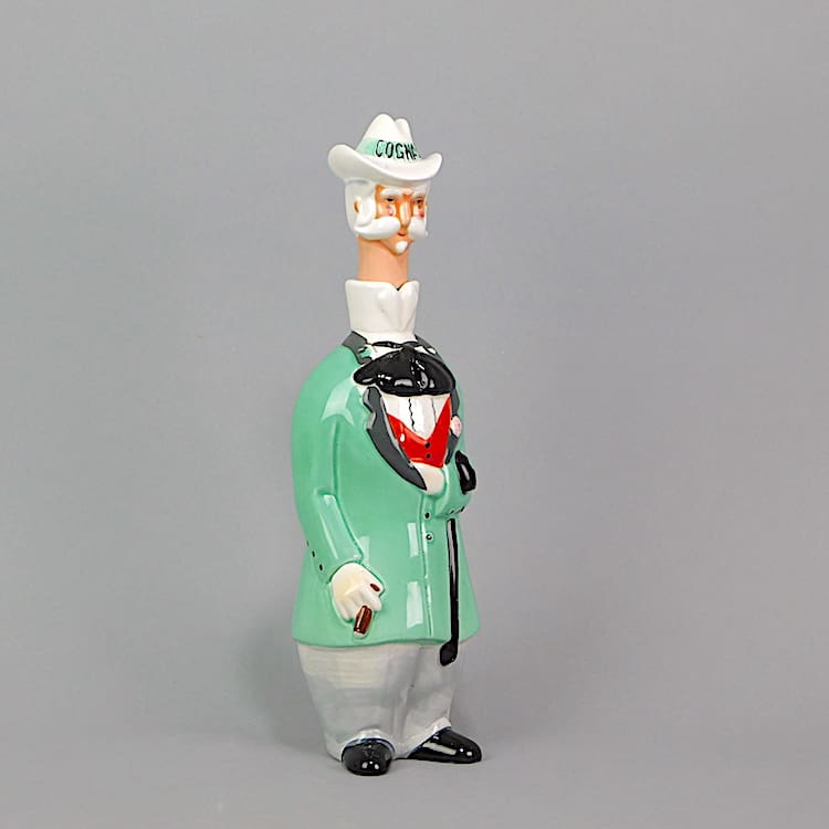 Ceramic man bottle, marked Cognac to his stetson hat. I believe French but American themed. Maker unknown as unmarked.
