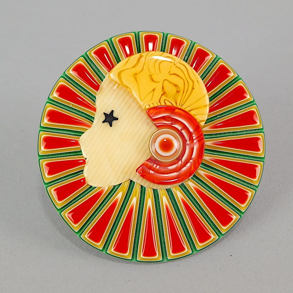 Vintage (1968 – 80 and not longer being made), full Colorette pierrette brooch, signed on the safety V clasp.