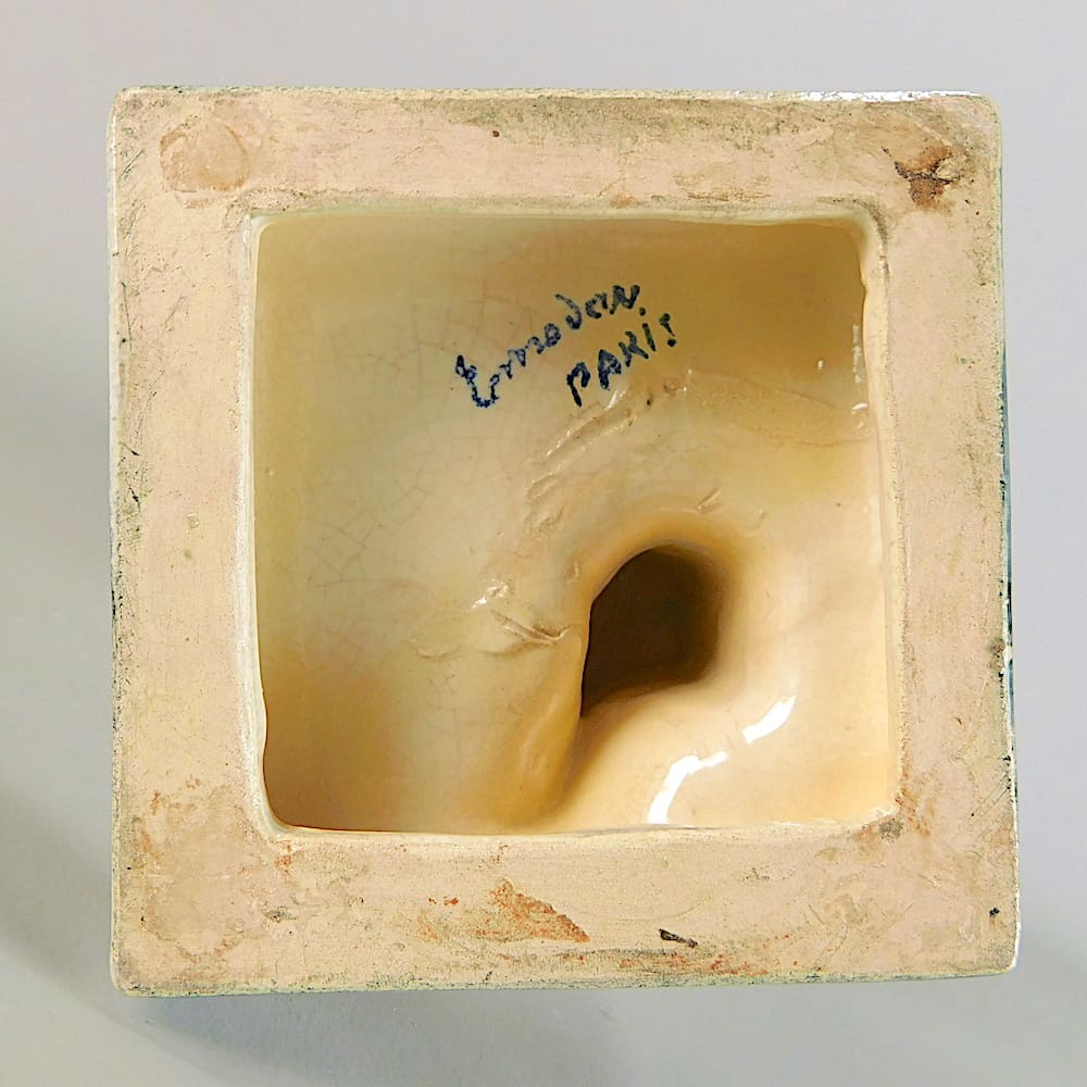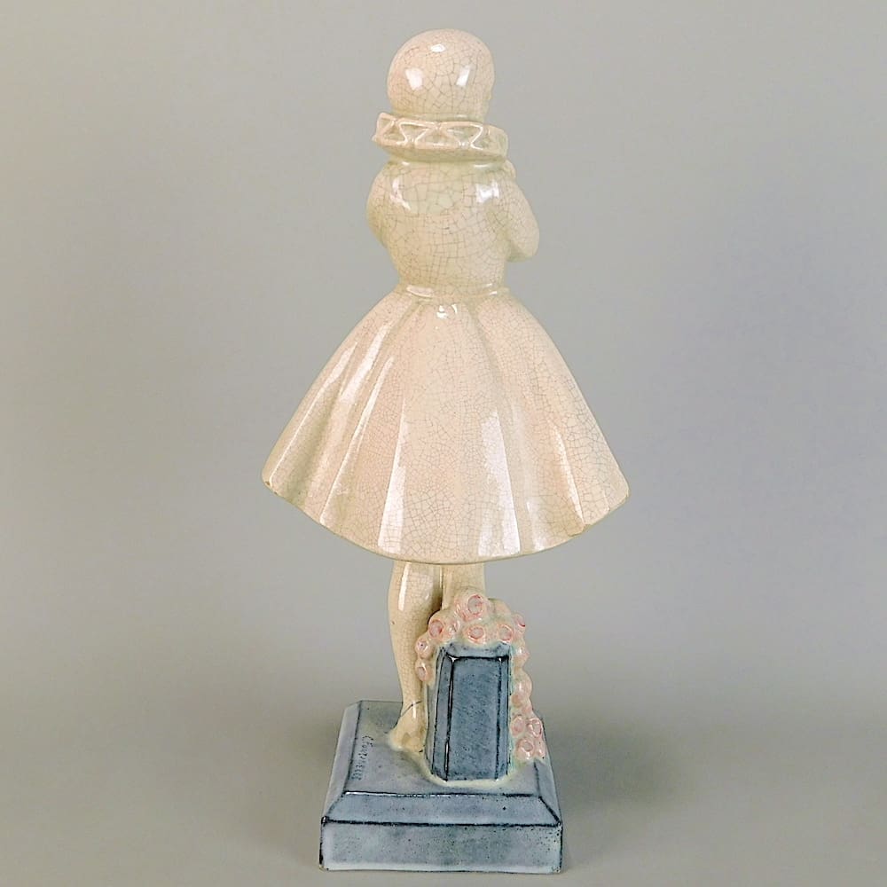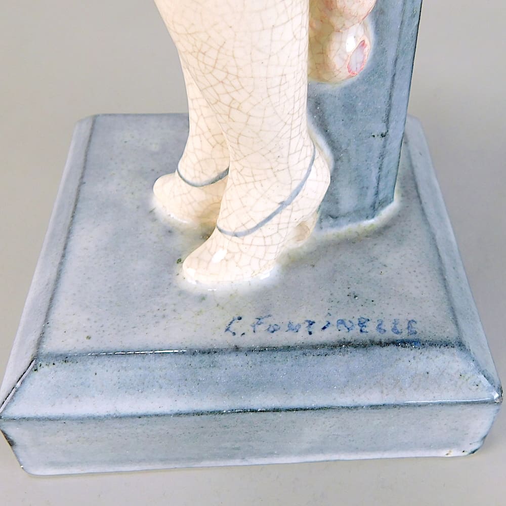 Rare French art deco columbine lady, signed to the base L. Fontinelle and marked under the base Paris. A rare piece with a crackle glaze finished coloured base detail.