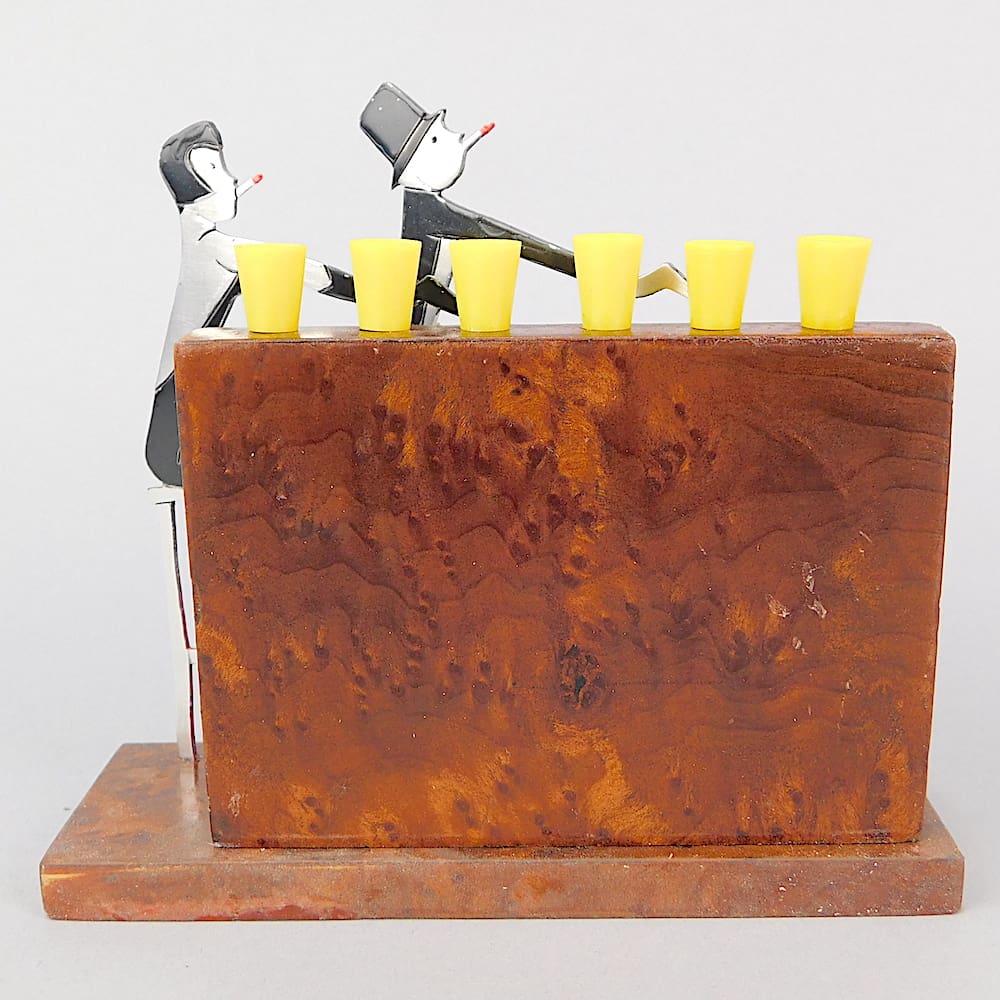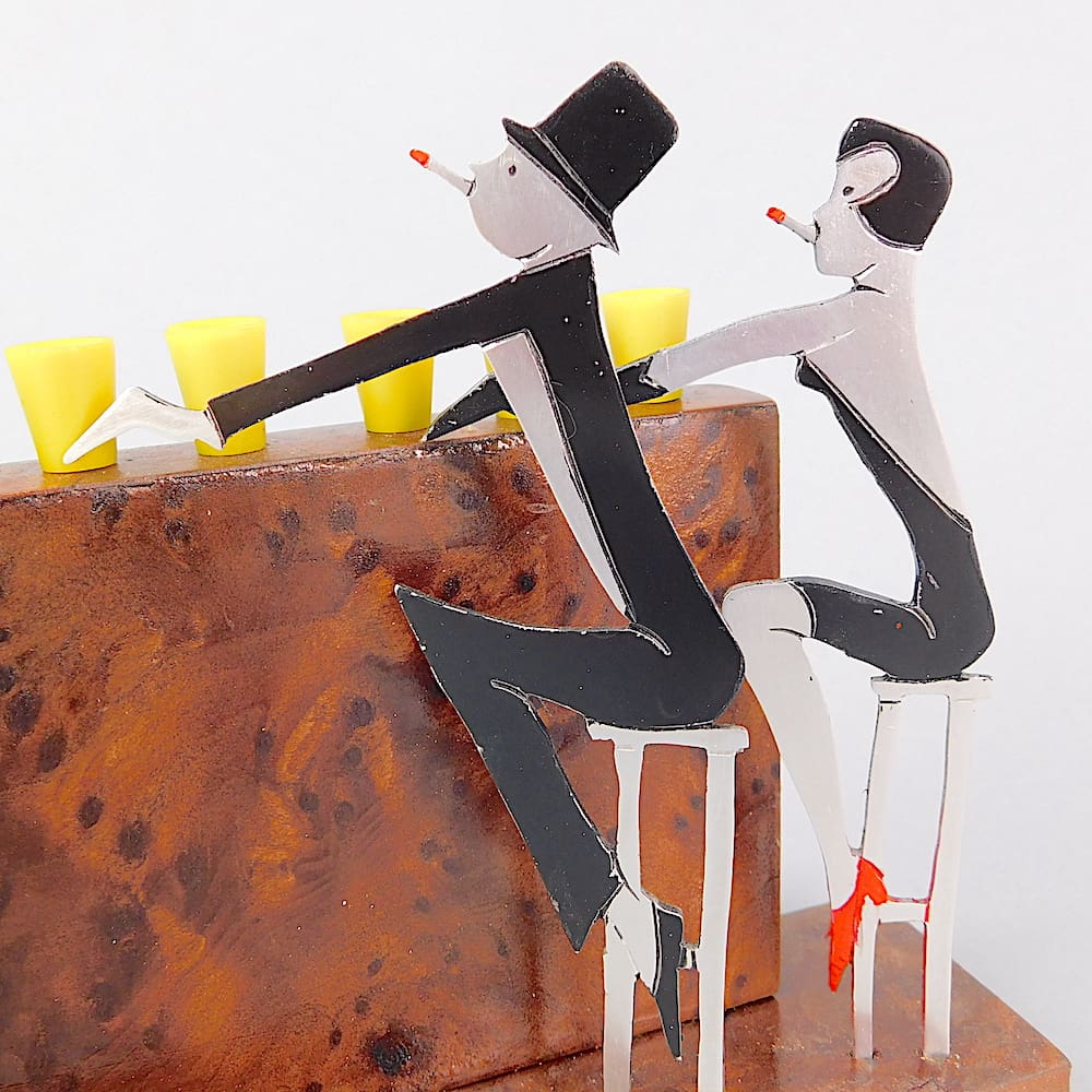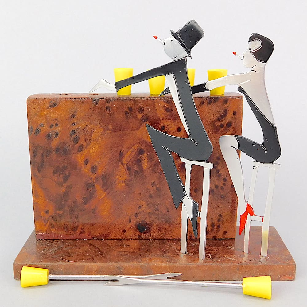 French art deco 2 dimensional hand painted cocktail sticks set. An unsigned Sudre.