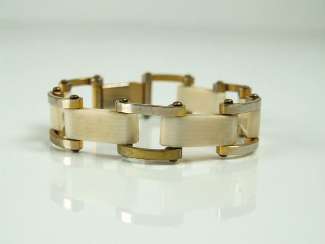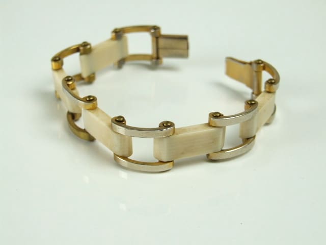 Cream galalith gate bracelet by Jakob Bengel.
