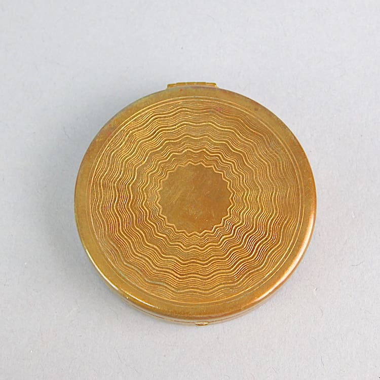 Butterfly wing crinolyn lady powder compact. Inside is a mirror to the lid and an old puff. In its original pouch.