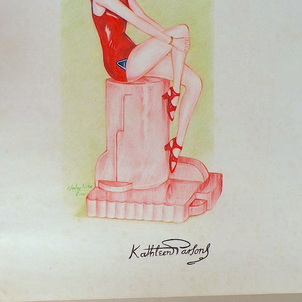 An original preparatory sketch by Wesley Nike from 2000 of original 1930s Kathleen Parsons models for a re-issue for Fieldings Crown Devon Collectors Club.
