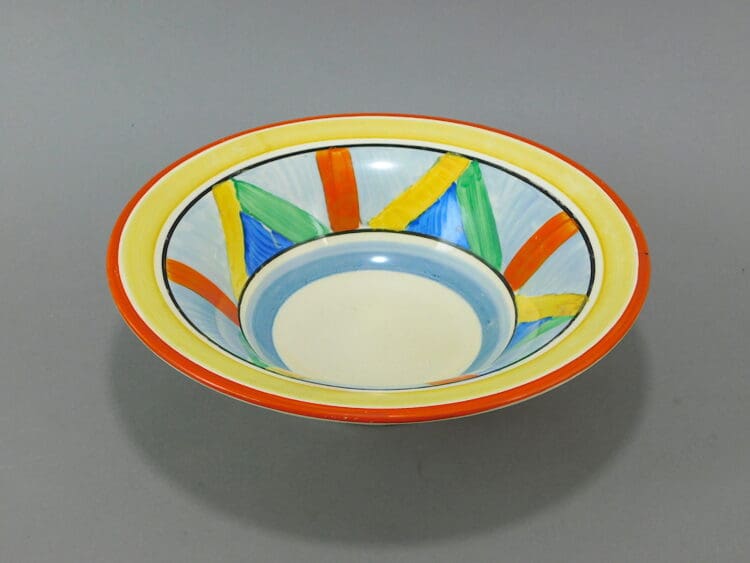 Vividly hand painted Bowl possibly by Charlotte Rhead, marked Crown Ducal.