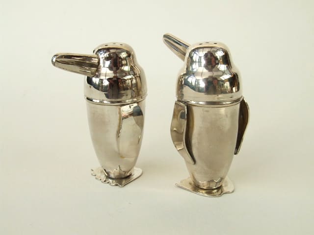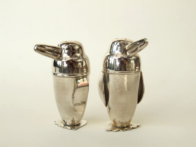 Original 1930’s English electro plated nickel silver penguins cruet set, bearing silver hallmarks and makers stamp for James Deakin and Sons.