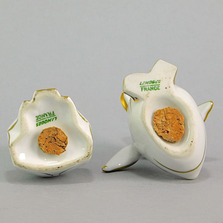 French ceramic cruet set of a hare and a duck. Designed by Sandoz and produced by Limogue company.