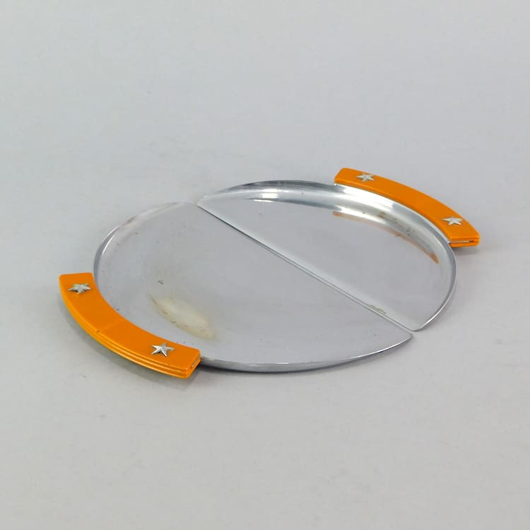 Chrome and phenolic handled crumber set by Chase USA and marked to the base.