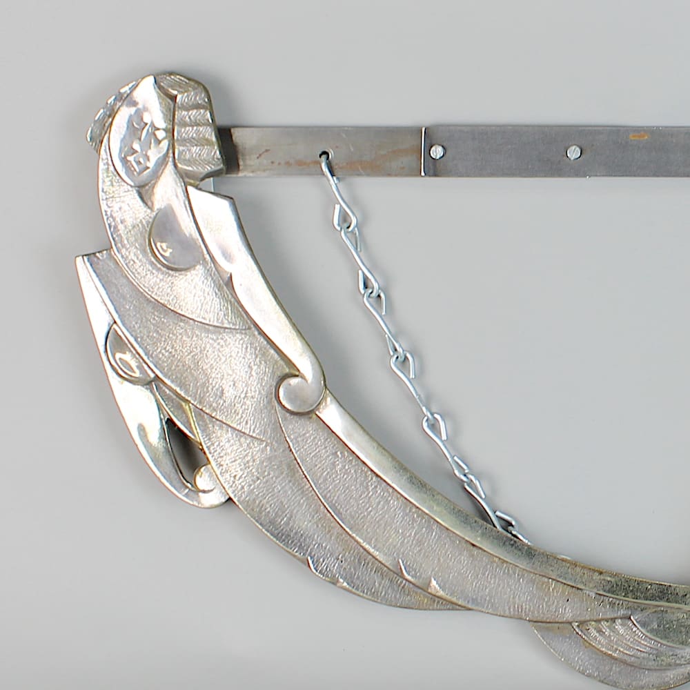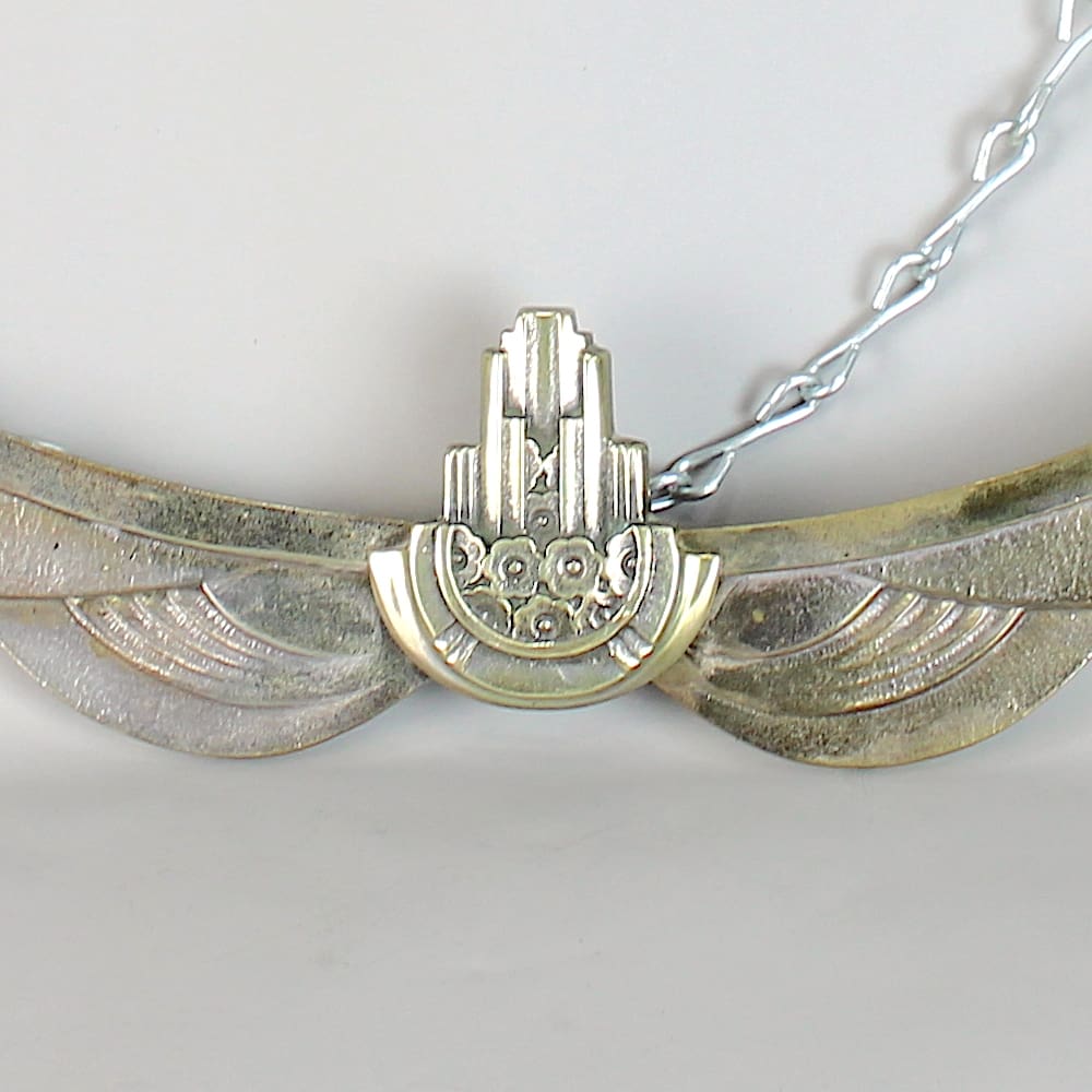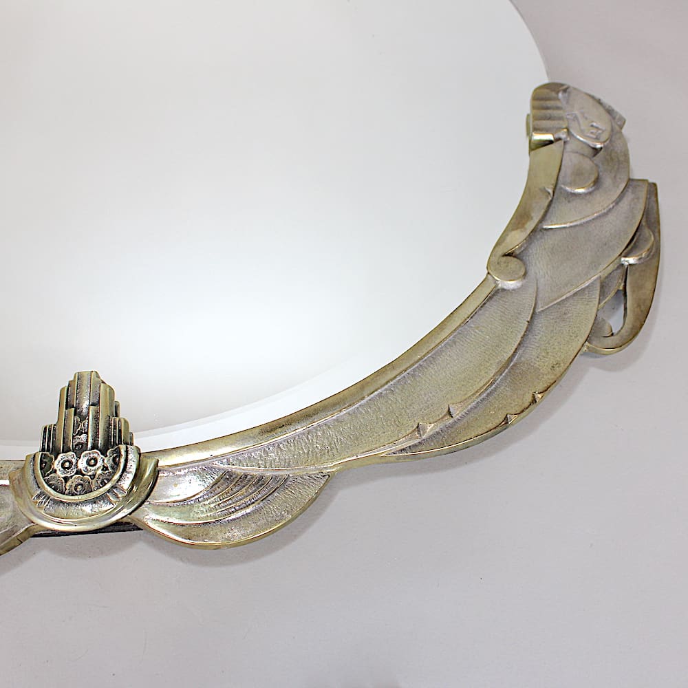 Rare French large circular art deco modernist mantle mirror depicting a pair of cubist ladies in silvered bronze.