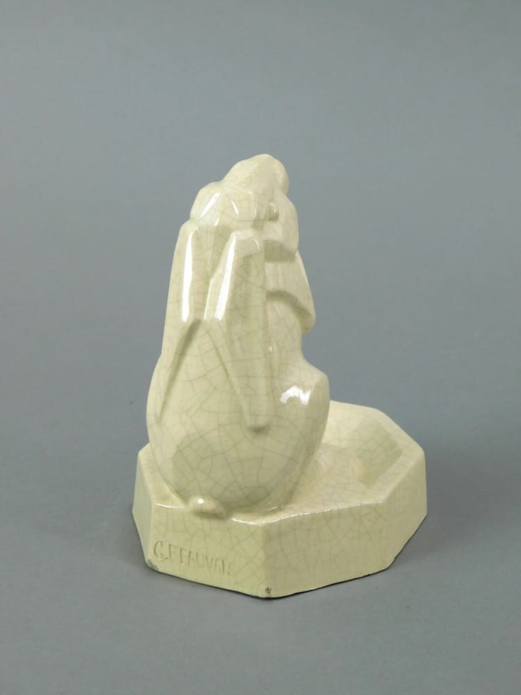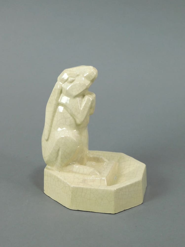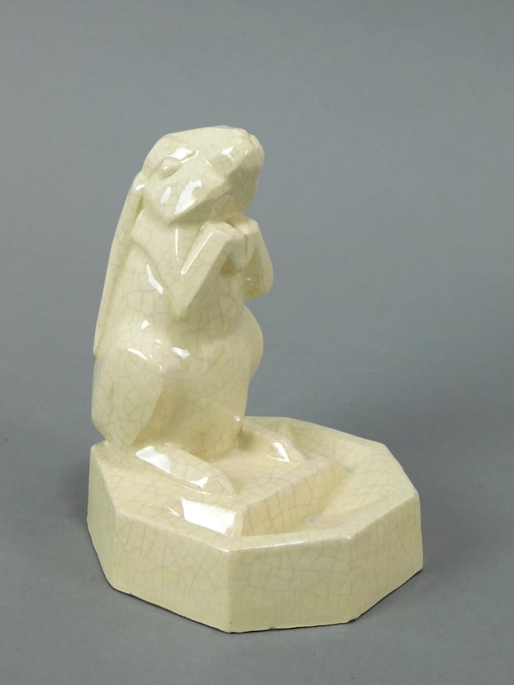 Stylish French crackle glaze cubist rabbit designed and signed Beauvais, with impressed signature to base and marked Kaza underneath.