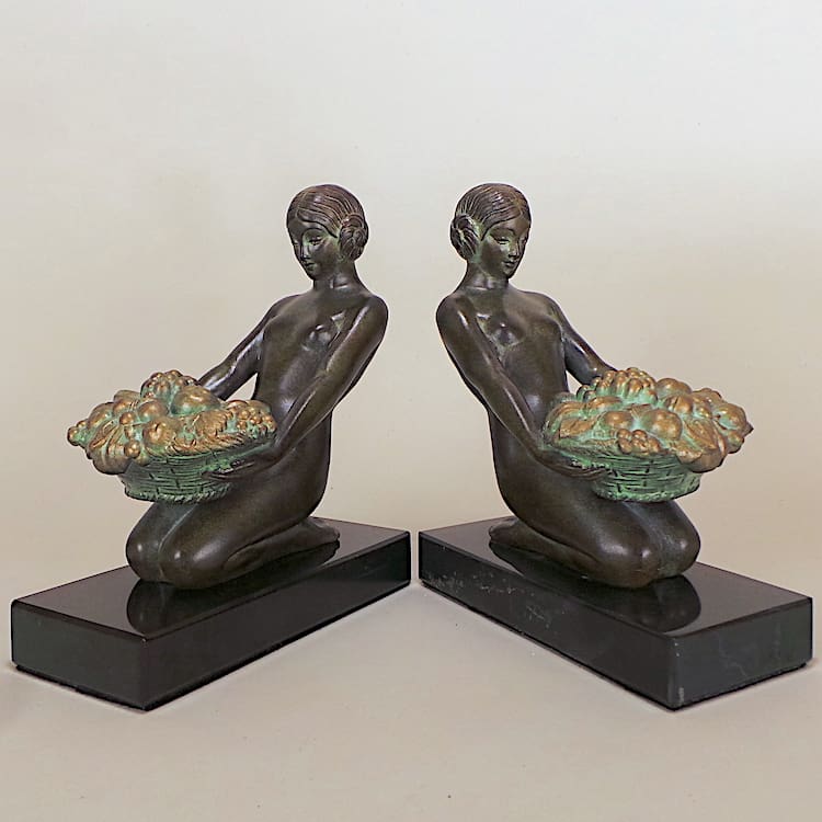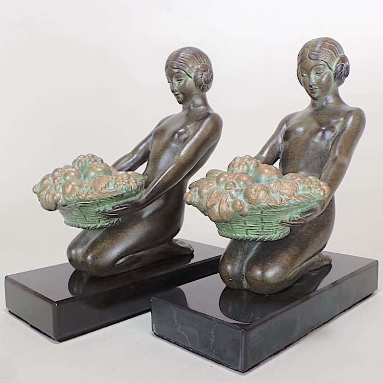 French art metal Art Deco lady bookends by Max Le Verrier.