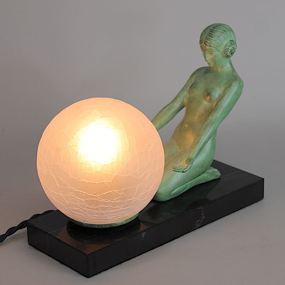 A French spelter art deco lady lamp by Max Le Verrier.