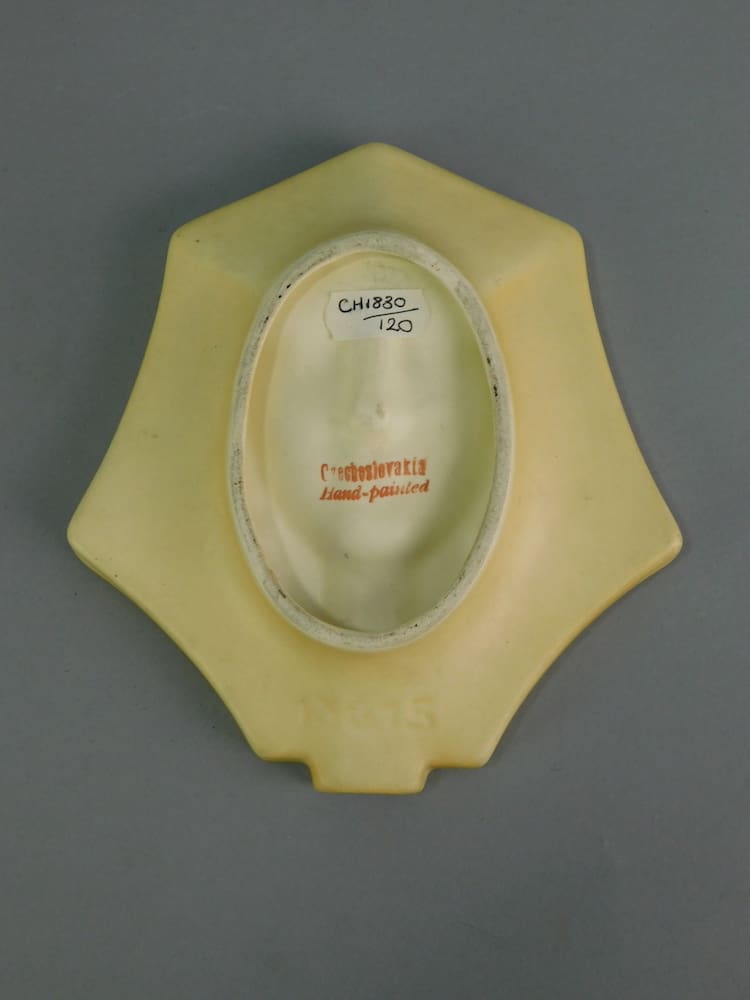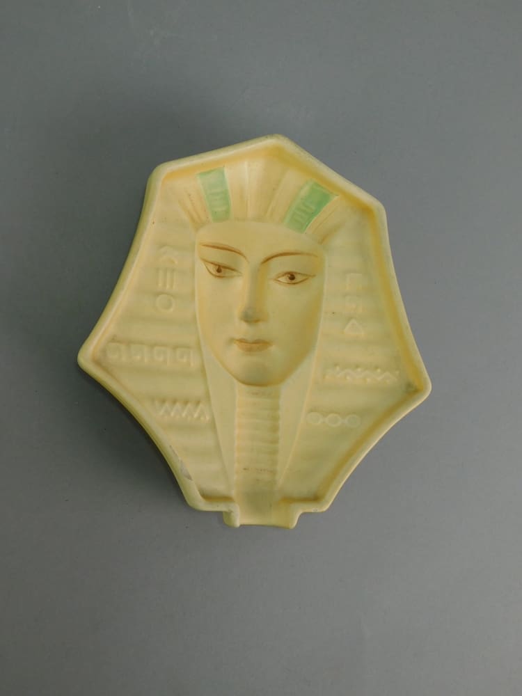 Lovely Czechoslovakian wall mask which doubles as an ashtray, and depicting an Egyptian Sphynx. Made in the 1930s and very unusual – in that when you move it, the face changes and appears to look at you from different directions.