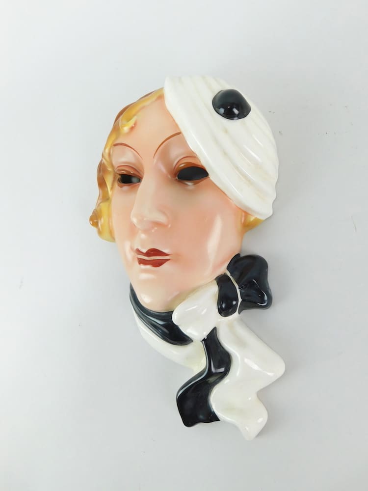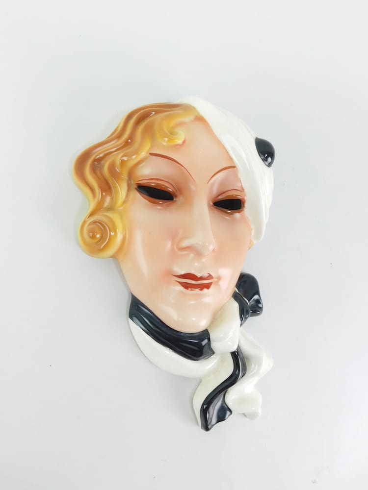Lovely Czechoslovakian slit-eye wall mask in black and cream colourway. I also have this mask in green red and blue.