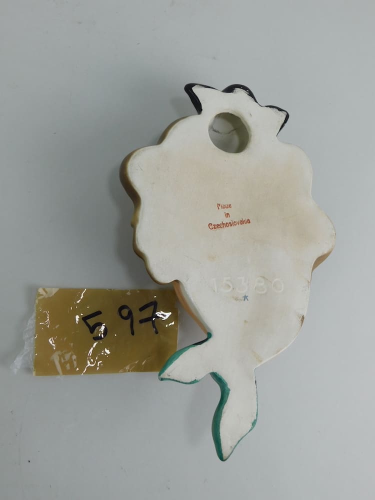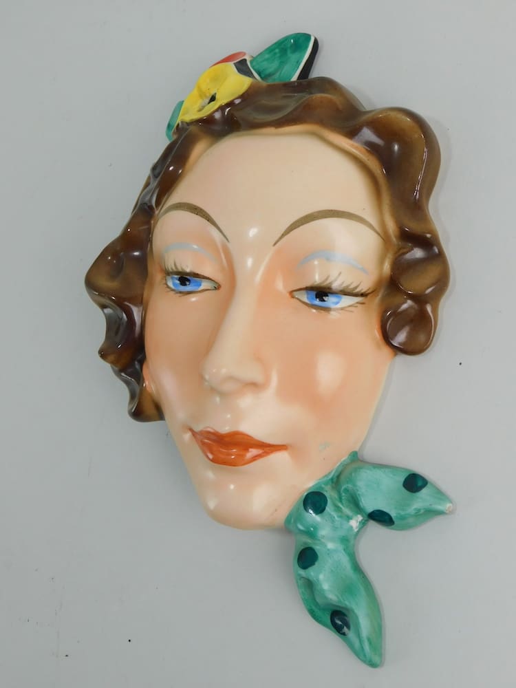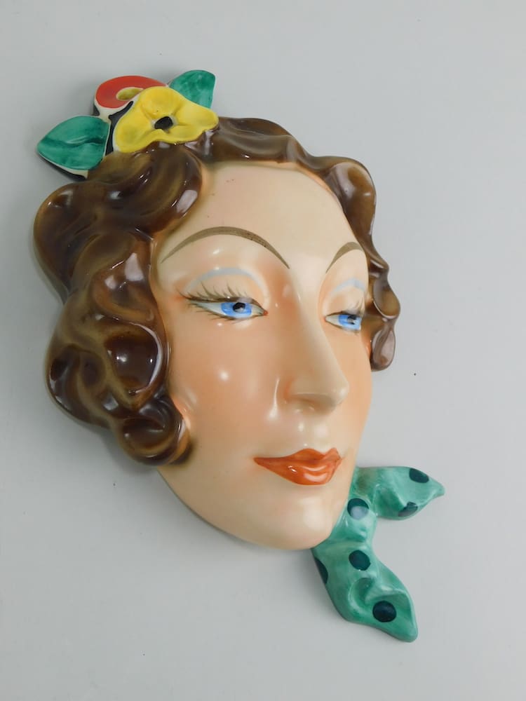 Hand painted ceramic mask bearing full Czechoslovakian marks and impressed numbers.
