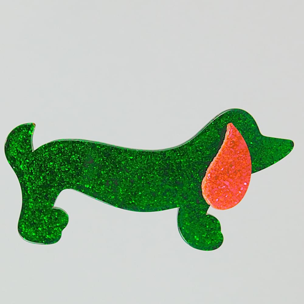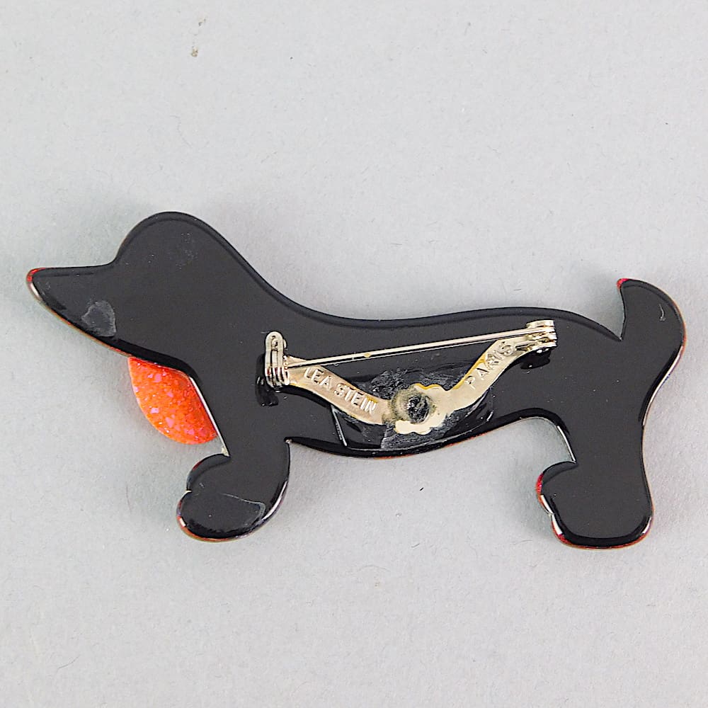 Dachshund dog brooch by Lea Stein. These are now getting very rare as they are first edition pieces and no longer in production. Fitted with a signed V safety clasp.