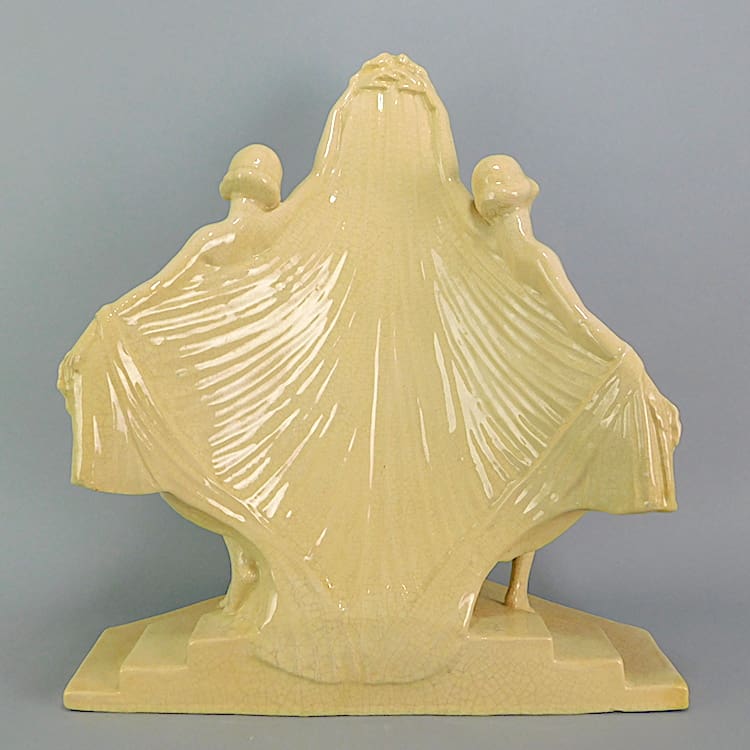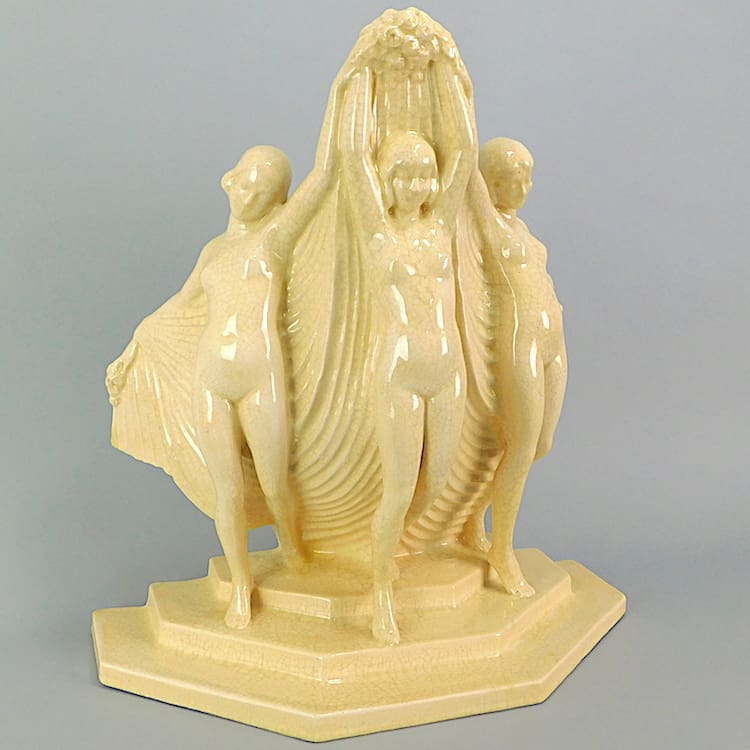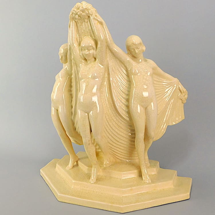 French art deco ceramic craquelier group of nude dancers. It was made as a craquelier and also as a terracotta. I have both versions, in fact the terracotta one I have has come from the family of Max Le Verrier. It is unsigned but I guarantee its by Le Faguays, plus I also have its original negative photograph from the Le Verrier archives