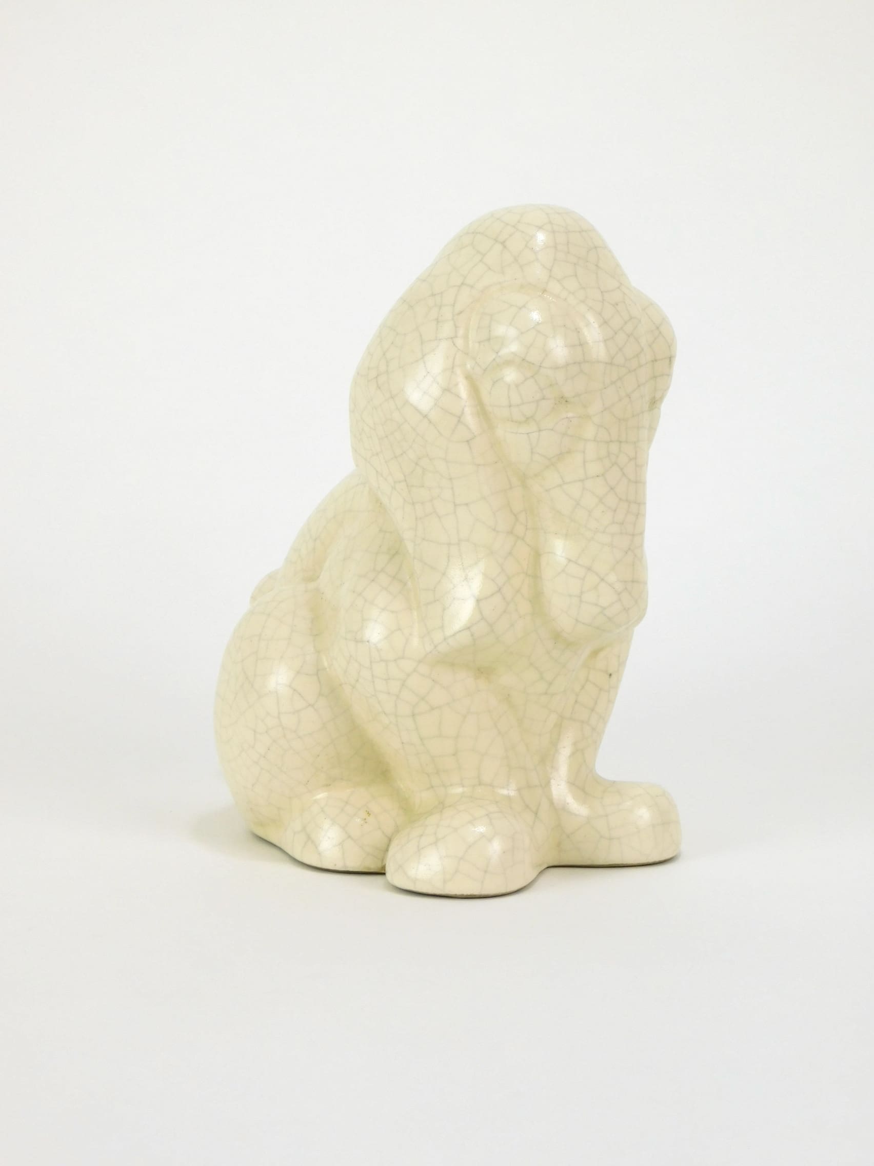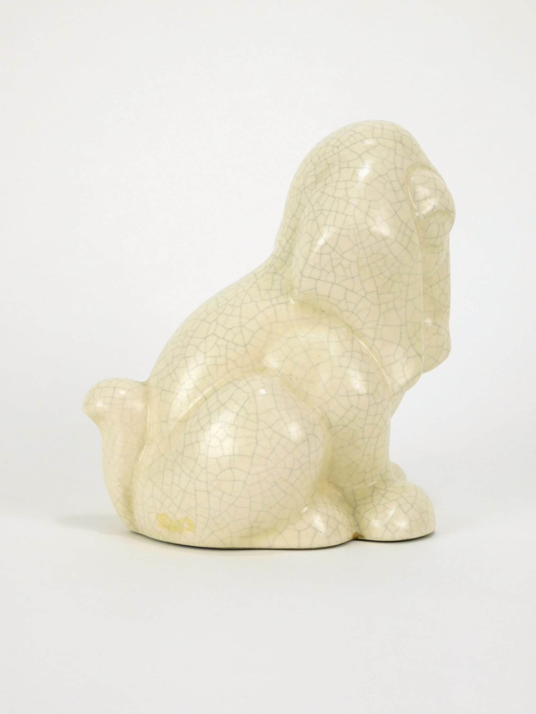 A French craquelier dog, possibly a daschund, unsigned and unmarked, but in the style of Quimper.