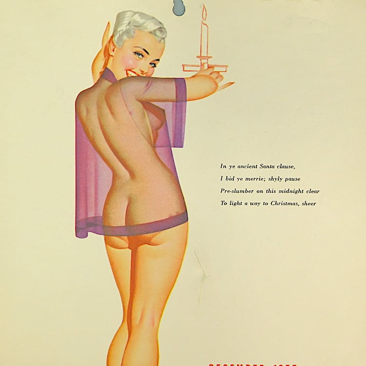 Part of an original Esquire Calendar for the year 1955 illustrated by the celebrated artist George Petty. Although the entire calendar is present, only 9 pages are in good condition. January, November and December are damaged. This is DECEMBER 1955 and if you look to the centre of the picture you can see the damage where something has pierced the paper. Consequently this one is priced accordingly. These are particularly popular for birthday presents, with your own birth month in 1955. These will be sold unframed as posting with glass is uninsurable in the post and risk being damaged. Your local framing shop will be able to frame these for you cheaply and with your own choice of frame. These original vintage calendars are no very difficult to find, even in the USA where they originated.