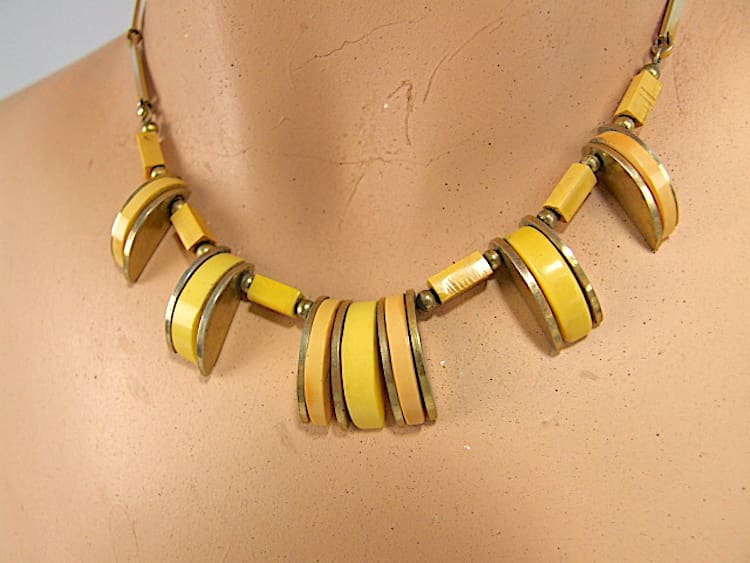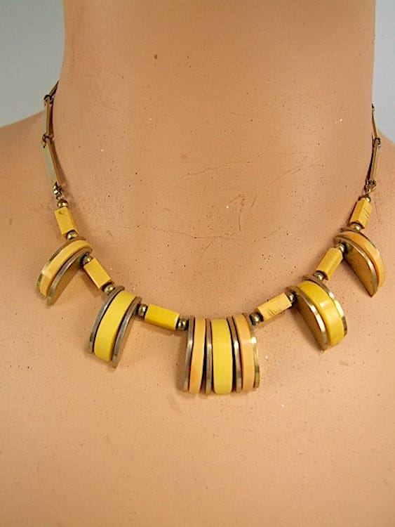 Two tone yellow galalith necklace made by Jakob Bengel in the early 1930’s.