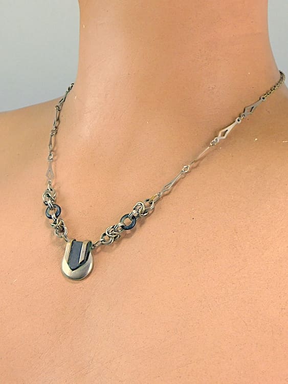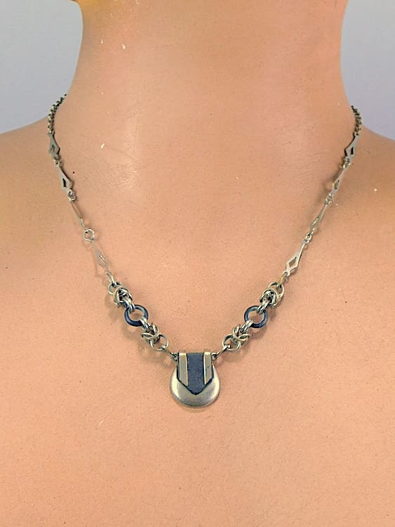 Black galalith and chromed metal necklace. A more delicate piece made by Bengel in the early 1930’s.