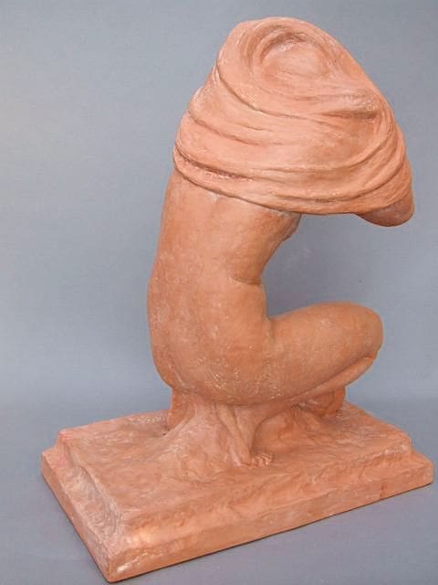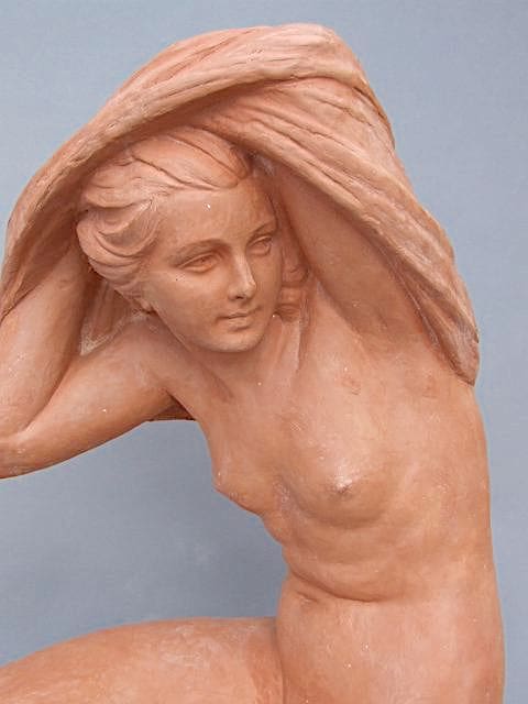 This is the large and famous Awakening terracotta nude by Demetre Chiparus. Signed in the clay on the right hand end of the base.