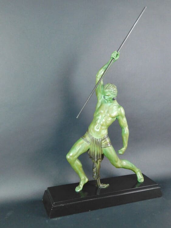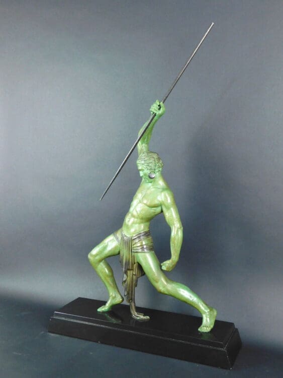 French art deco spelter male hunter – this piece is titled the Hunter. Signed to the base D H Chiparus on the right hand corner.